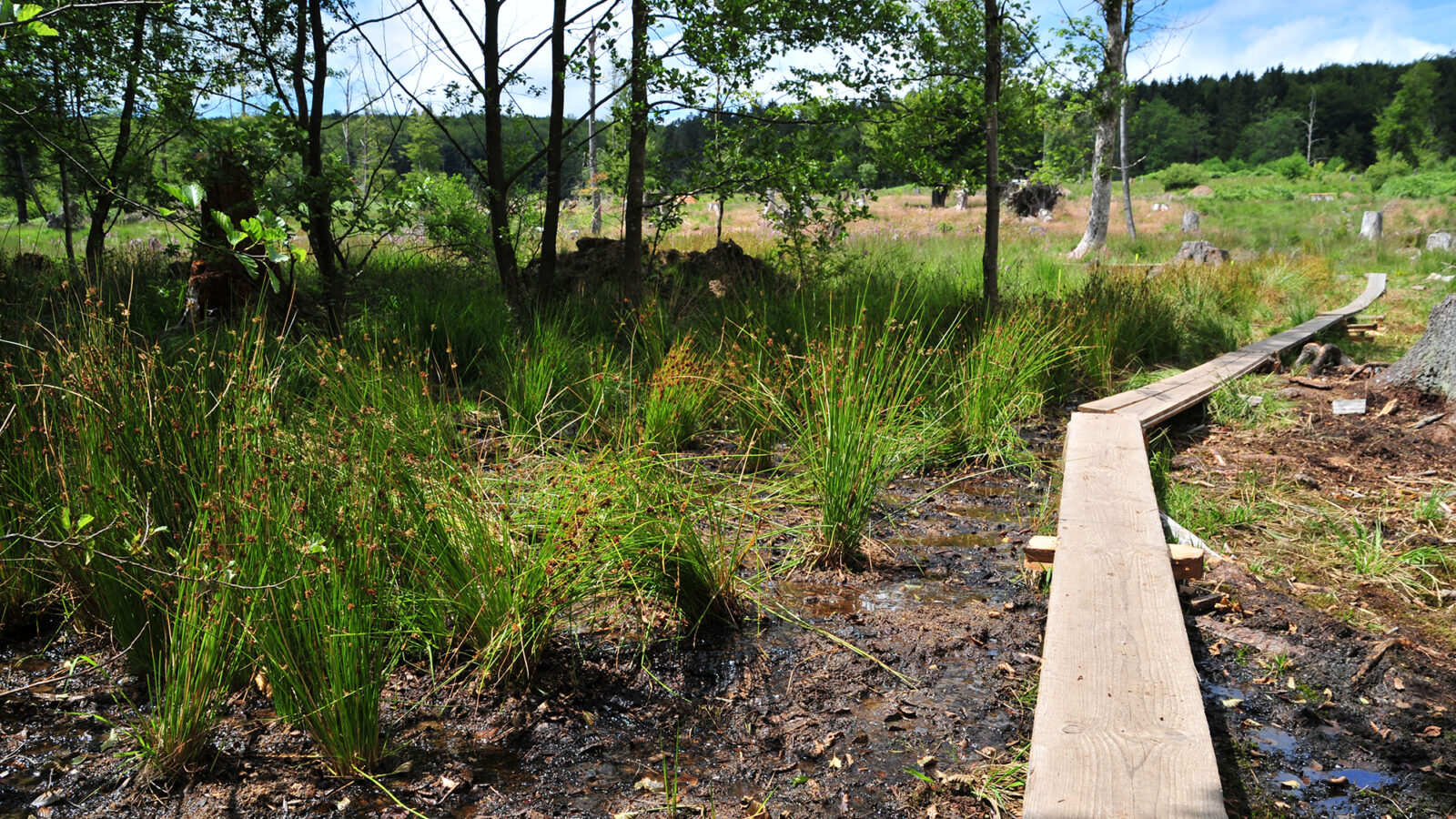 Werner & Mertz unterstützte zudem das inzwischen abgeschlossene LIFE-Projekt „Wiederherstellung und Erhalt von Hang- und Zwischenmooren im Hochwald (Hunsrück)“. Zusammen mit dem NABU Rheinland-Pfalz und anderen Organisationen sowie staatlichen Stellen setzten wir uns für Reaktivierung der wertvollen Moore im Hochwald ein. Das beinhaltete beispielsweise, Entwässerungsgräben zu verschließen und Forstwege zurückzubauen. Regenwasser verbleibt somit länger im Gebiet und die Arten der Moore können sich nun erholen und wieder ausbreiten.