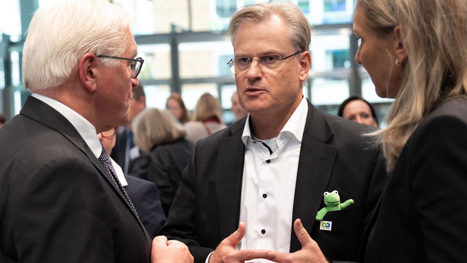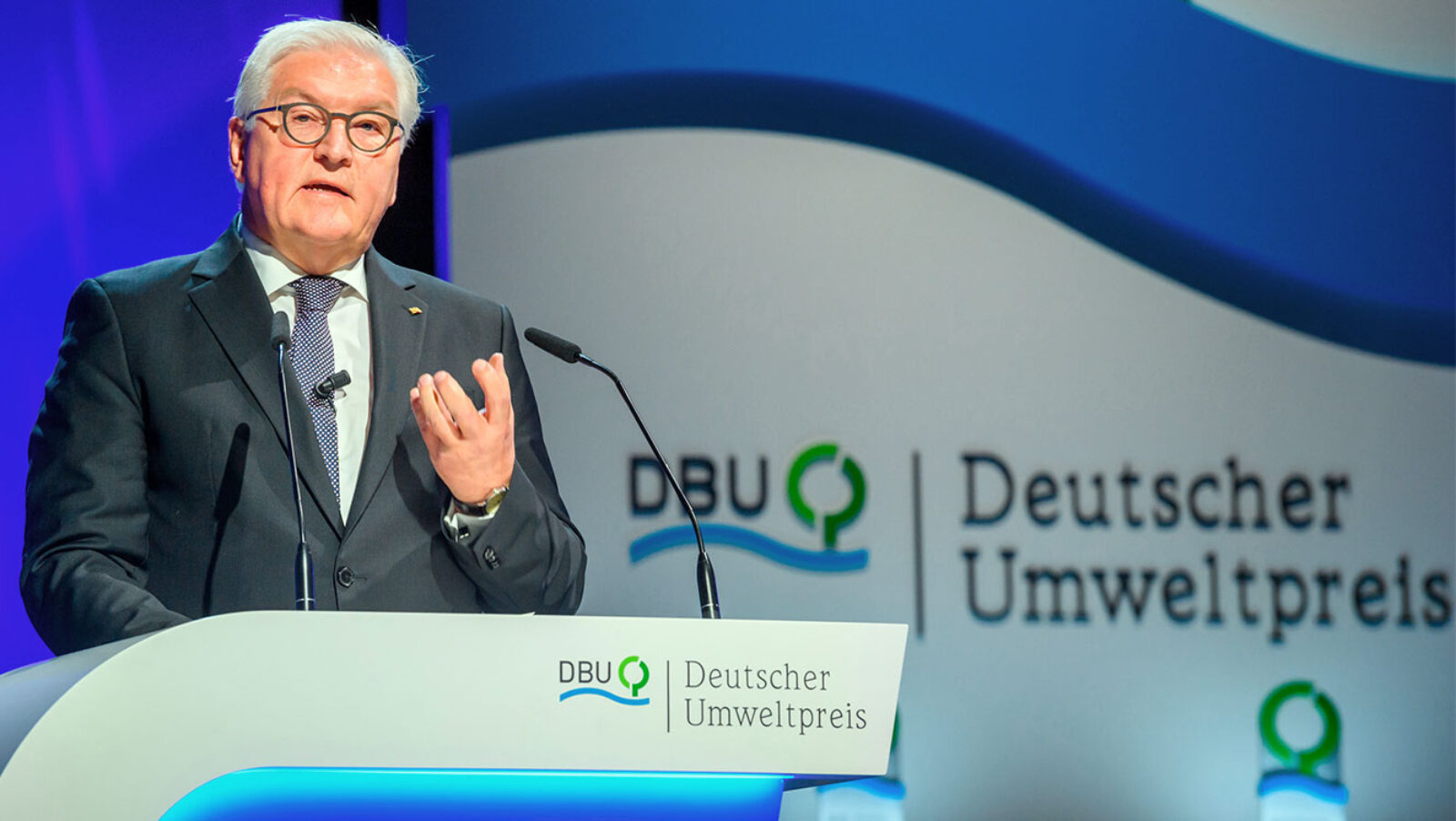 Bundespräsident Frank-Walter Steinmeier hat die Bürger aufgefordert, „mit mutigen Entscheidungen heute“ im Umwelt- und Klimaschutz „positive Wechselwirkungen für morgen“ auszulösen. „Die Zukunft ist eben nicht vorbestimmt. Es liegt an uns, was wir daraus machen“, sagte er bei der Verleihung des Deutschen Umweltpreises der Deutschen Bundesstiftung Umwelt (DBU) in Mannheim: „Die Plastikflasche, die heute recycelt oder gar nicht erst hergestellt wird, landet morgen nicht in den Weltmeeren. Sie kommt übermorgen wieder in den Rohstoffkreislauf. Der Boden, der heute vor der Erosion geschützt wird, bindet Kohlenstoff. Und er kann damit auch morgen noch als Ackerland Menschen ernähren.“ Steinmeier überreichte der Bodenwissenschaftlerin Prof. Dr. Ingrid Kögel-Knabner von der Technischen Universität München und dem Unternehmer Reinhard Schneider (Firma Werner & Mertz, Mainz) den mit insgesamt 500.000 Euro höchstdotierten, unabhängigen Umweltpreis Europas.