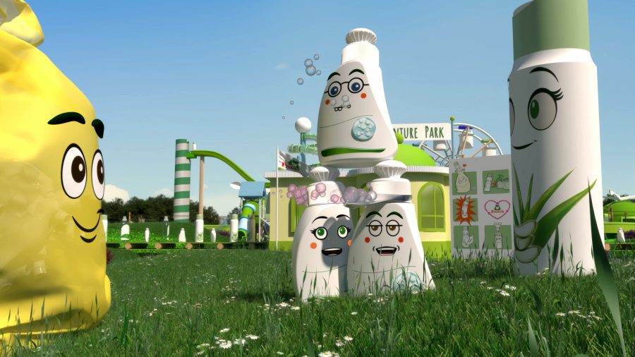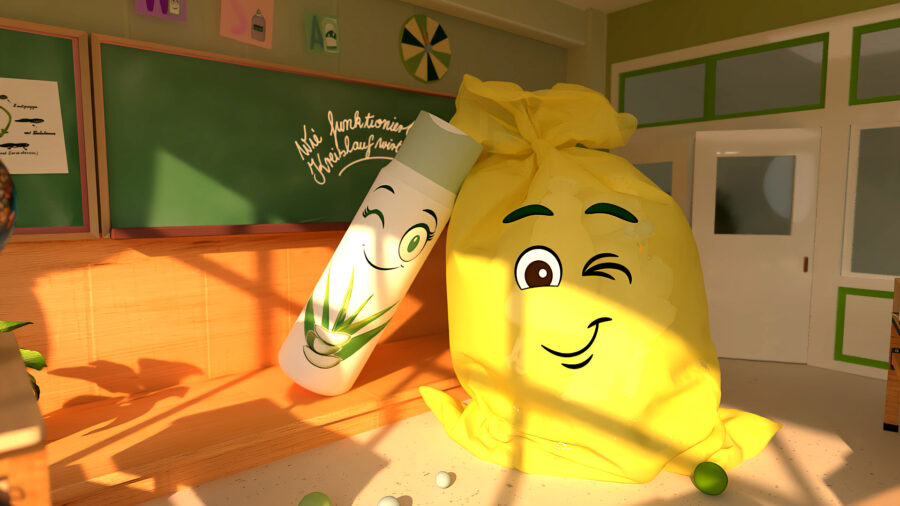 Die Kleinen dürfen mit ihrer Lehrerin Recy in den Recyclatventure-Park. Hier haben sie viel Spaß und lernen gleichzeitig, dass das mechanische Recycling hochwertig funktioniert: Wenn drei Flaschen ins Recycling gehen, dann kommen auch drei hochwertige Verpackungen wieder raus. Denn das, was als leere Flasche im Gelben Sack landet, lässt sich hochwertig, energie- und ressourcenschonend werkstofflich verwerten.