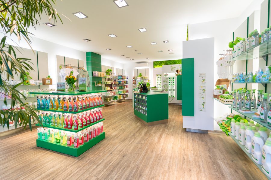 Hier vor Ort zeigen wir im Frosch Laden und im Fabrikverkauf Kund*innen die Vielfalt unserer zahlreichen Produkte.