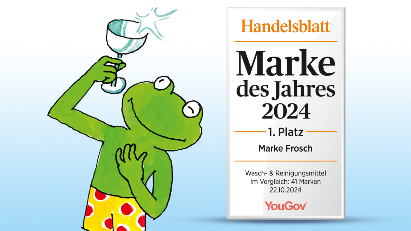 Verbraucher*innen haben entschieden: Die Marke Frosch des Mainzer Mittelständlers hat sich in einer großangelegten Studie gegen Brands wie Persil und Ariel durchgesetzt und ist Marke des Jahres 2024 in der Kategorie Wasche & Reinigen!