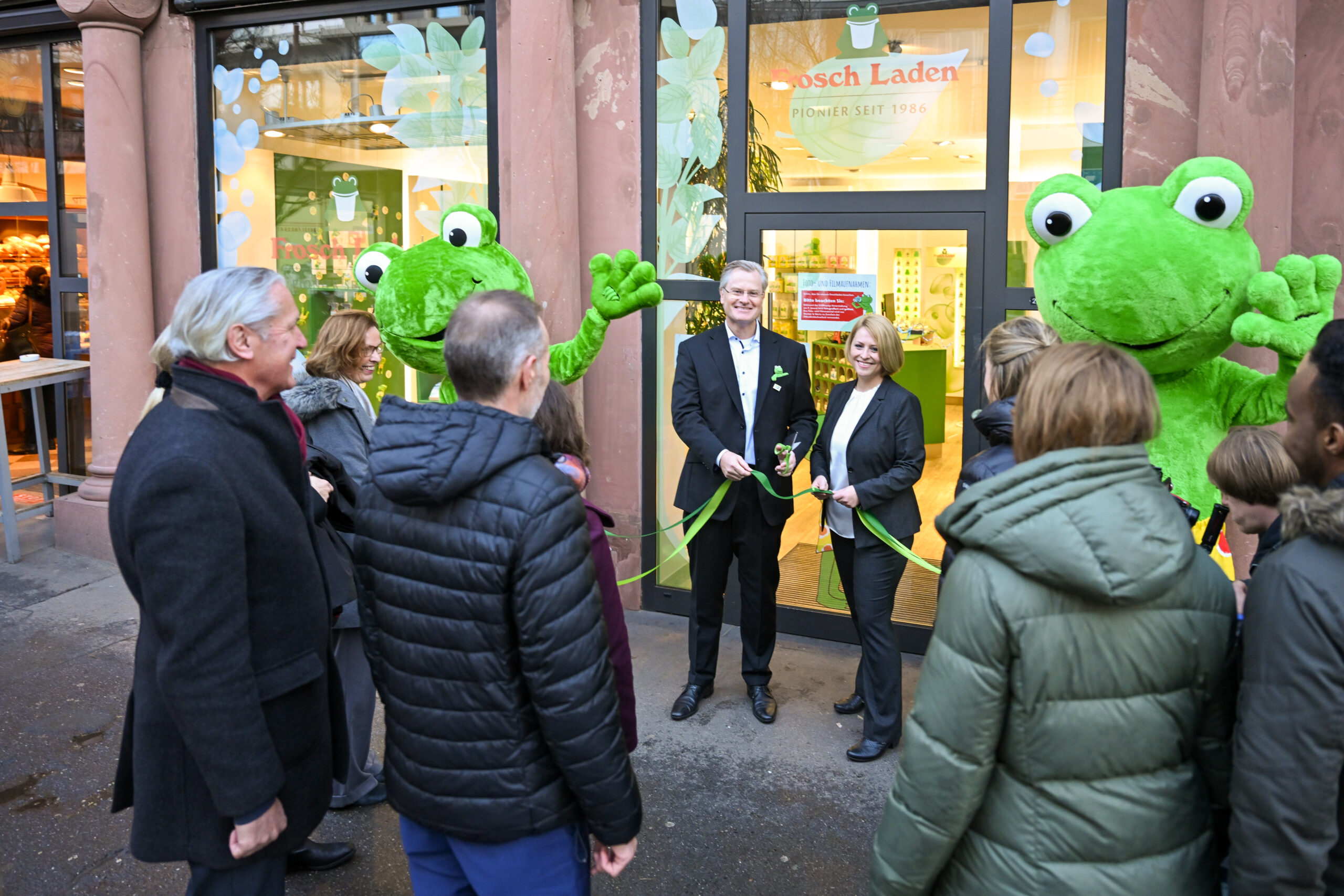 Menschengroße Plüschfrösche haben die Verbraucher*innen als Maskottchen bereits vorm Eingang begrüßt, im Laden konnten die Kund*innen dann das gesamte Sortiment von „Frosch“ entdecken: In der Schöfferstraße 6 hat das Mainzer Familienunternehmen Werner & Mertz heute einen eigenen Store für seine bekannte Öko-Marke eröffnet.