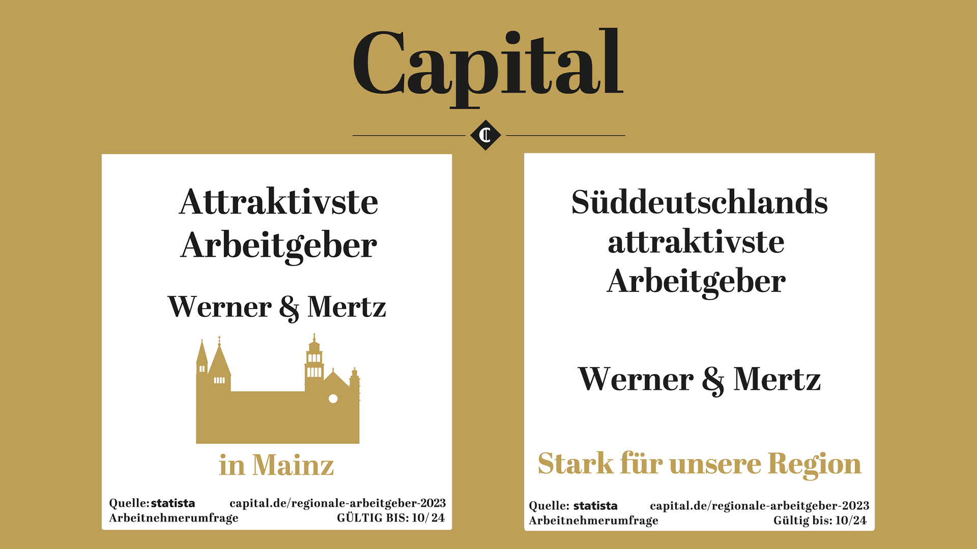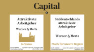 Für die Capital-Studie „attraktivste Arbeitgeber der Region“ hat das Statistikportal Statista 7.500 Arbeitnehmer*innen in einer Online-Umfrage befragt, zur Auswahl standen 2.500 Arbeitgeber aus 20 Großstadtregionen mit einer Belegschaftsgröße von 250 bis 5.000 Mitarbeiter*innen.