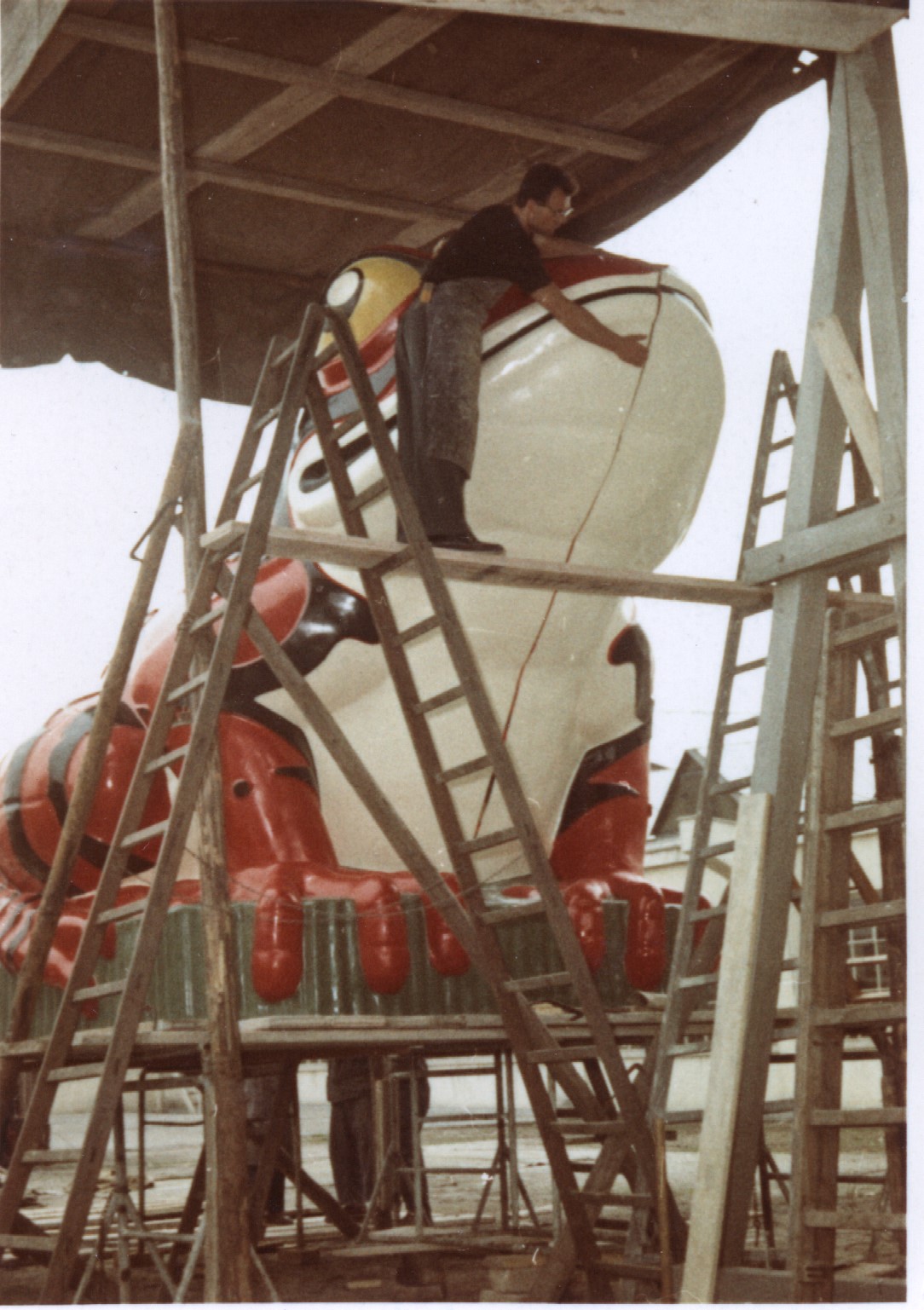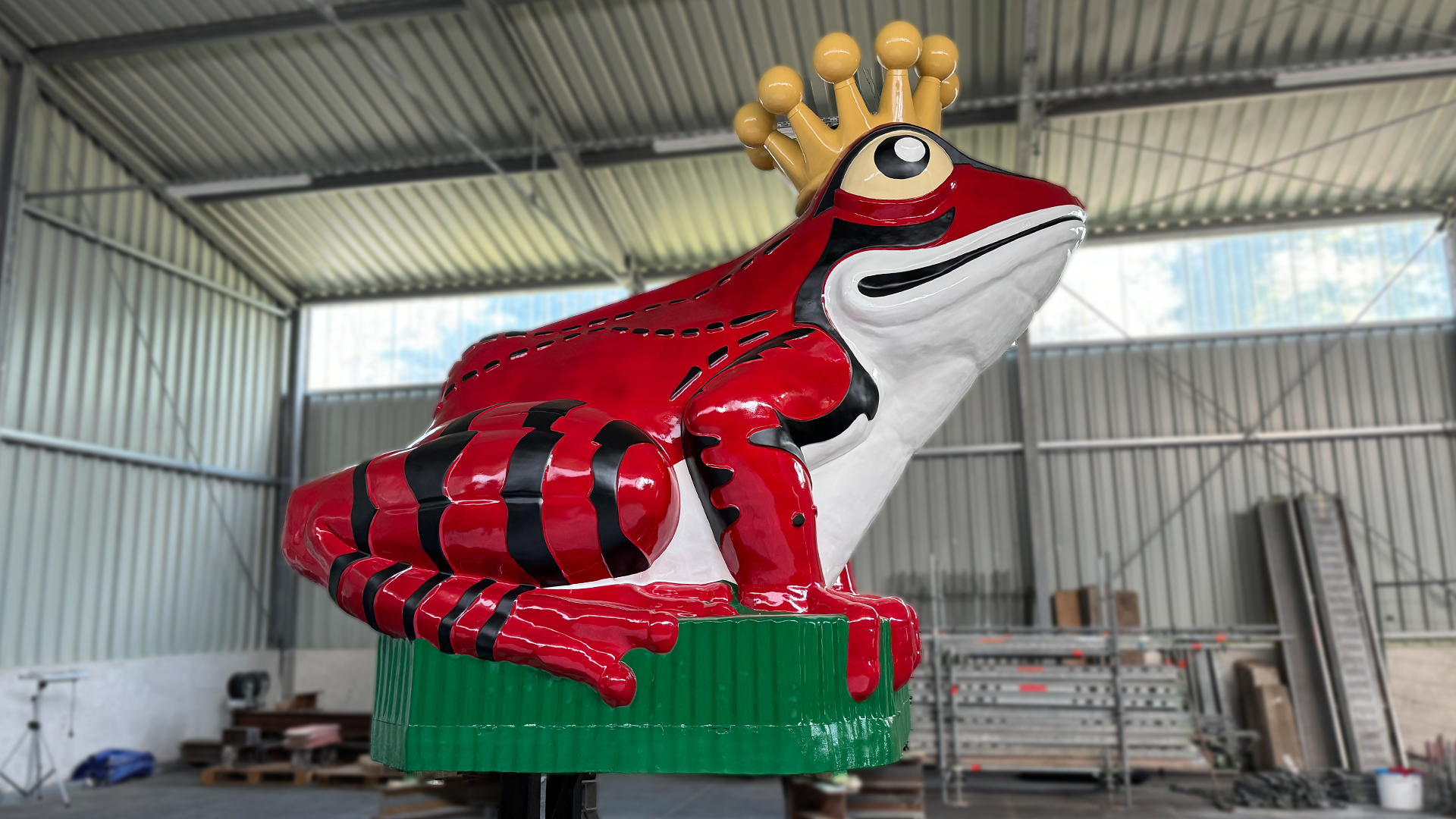 Das Mainzer Traditionsunternehmen Werner & Mertz besteht seit mehr als 150 Jahren, der rote Froschkönig ist seit über 100 Jahren das Markenzeichen. Anfangs war er das Logo der Schuhmittelmarke Erdal, seit vielen Jahrzehnten ist er das Firmensignet des gesamten Unternehmens. Der 1959 erbaute Frosch besteht aus zwei miteinander verbunden Kunststoff-halbschalen und konnte aufgrund seiner Transparenz als Reklame ausgeleuchtet werden. Das Industriedenkmal gehörte schon bald als bekanntes Zeichen zur rheinland-pfälzischen Landeshauptstadt und saß bis 2019 gut sichtbar auf seinem „Froschturm“ auf dem Werksgelände des Reinigungsmittelunternehmens in Rheinnähe. Im Zuge der neuen Werkstrukturplanung brachten Expert*innen die Kunststoffplastik unter größter Sorgfalt in eine geschützte Halle und erfassten seine Konstruktion und den Zustand. Darauf aufbauend entwickelten sie ein Erhaltungskonzept und Restaurierungsvorschläge.