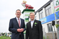 Lange wurde der denkmalgeschützte rote Frosch vermisst, ab heute wird das Mainzer Wahrzeichen Einheimische und Gäste wieder gut sichtbar begrüßen. Werner & Mertz-Inhaber Reinhard Schneider hat das bekannte Markenzeichens seines Unternehmens in Anwesenheit des rheinland-pfälzischen Innenministers Michael Ebling feierlich enthüllt. Der frisch restaurierte „Erdal-Frosch“ mit Krönchen ist von seinem neuen Standort aus, auf einem Turm mit Glasfassade an der Rheinallee unweit der Hauptverwaltung von Werner & Mertz, schon von Weitem gut sichtbar.