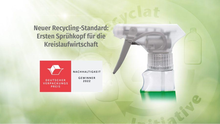 Erneut setzen wir einen neuen Recycling-Standard: Wir entwickeln den ersten Trigger für die Kreislaufwirtschaft: vollständig recyclingfähig und erstmals mit Post-Consumer-Recyclat in den mechanischen Bauteilen. Dafür erhalten wir einmal mehr den Deutschen Verpackungspreis in der Kategorie Nachhaltigkeit.